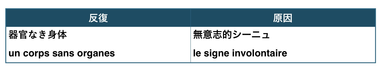 そして1976年のドゥルーズの器官なき身体の記述を読むと、上の図の続きとしてこういう風に読める。