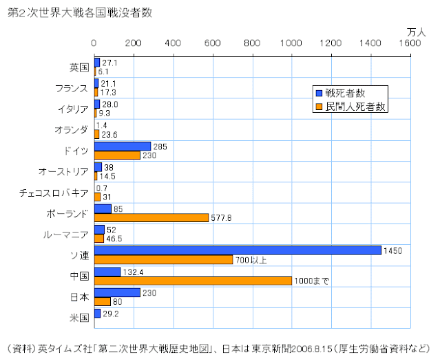 おお、中国は民間人がたくさん死んでるね、どこが殺したんだっけな、主に国民総動員制国家だろ。