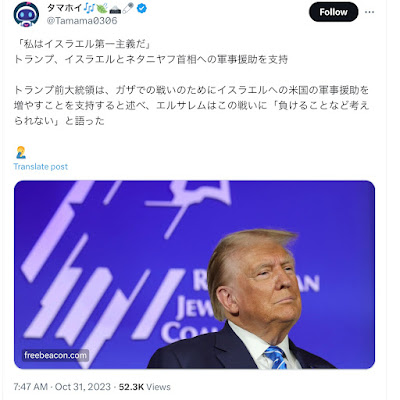 《私は親イスラエルであり、いつもそうだった。I am, and have always been, pro-Israel. 》だって? どうしようもないね。まさにプーチン曰くの「パレスチナを救うにはイスラエルの背後にいる蜘蛛と戦うほかない」だよ